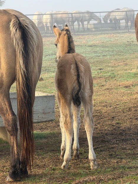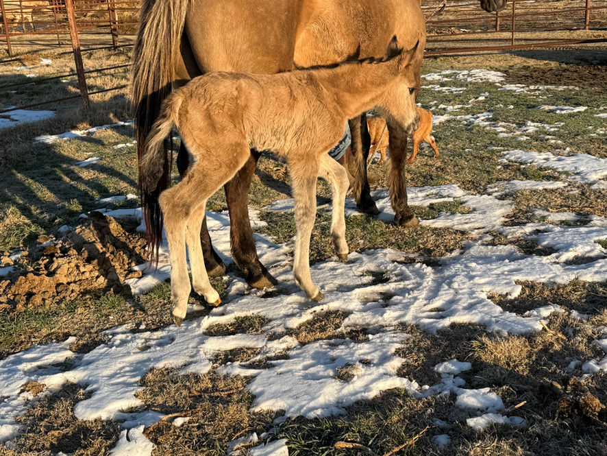 Pretty grullo filly that is not only athletic, she will be good sized. She is double homozygous (black and dun)
