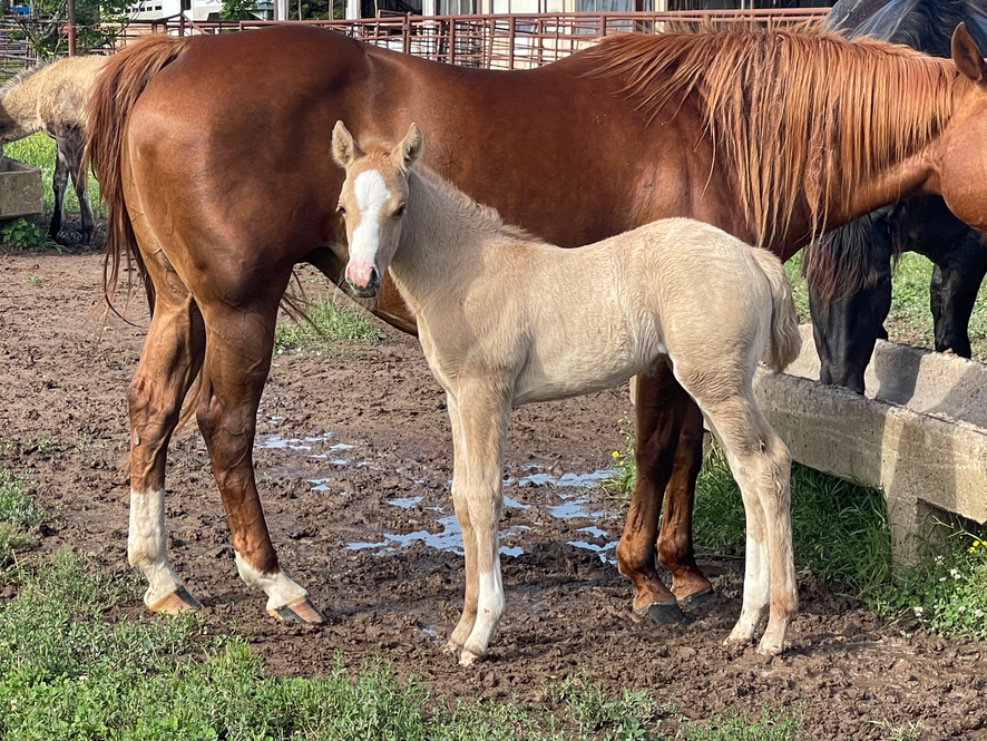Own daughter of High Brow Hickory out of a daughter of Playboy. Fantastic mom and produces talented and trainable babies. Lightly started at two not ridden since. Sound! In foal to Snow Jack Pococito for a Dunskin, dunoleno or smoky grullo baby in the spring.